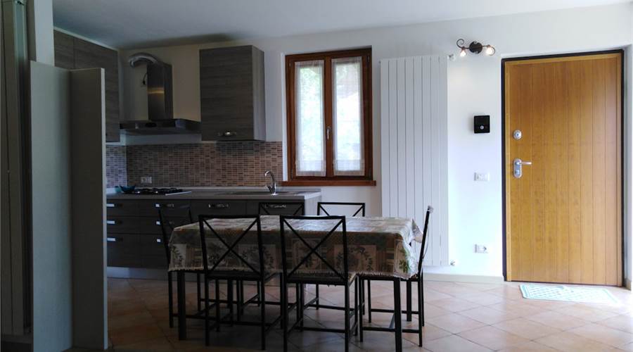 Dorga, meravigliosa posizione a ridosso del centro, in contesto tranquillo e verdeggiante, in complesso di villette di recente costruzione in perfette condizioni di manutenzione, proponiamo soleggiatissimo appartamento posto su due livelli così composto: al piano terra, cucina/soggiorno con accesso al giardino privato completamente pianeggiante e riservato con ampia zona pavimentata in porfido e tenda da sole ideale per mangiare all'aperto, camera matrimoniale con accesso al giardino privato e bagno con doccia, al piano seminterrato grande taverna ben areata con camino a legna dotato di inserto, camera matrimoniale, bagno/lavanderia e box doppio. La casa è dotata di riscaldamento termo autonomo a metano con termosifoni integrato da un termo camino che consente un notevole risparmio energetico. Caratteristiche finiture in pietra e legno. Parzialmente arredata. DA VEDERE!!!